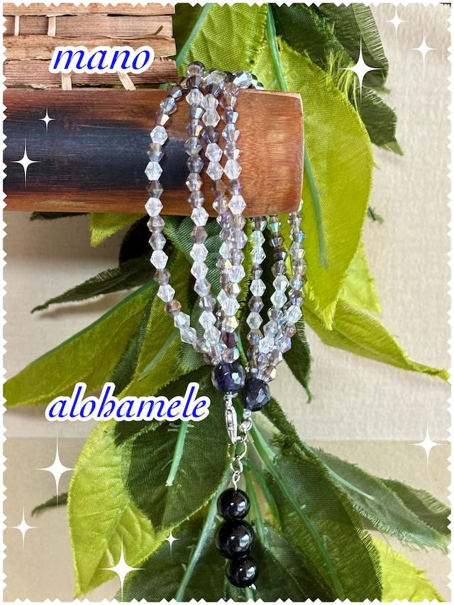 melekalikimaka. No.3 「華やかさと光の魔法」 melekalikimaka No.3は、黒とクリアのクリスタルビーズを用いた美しいブレスレットです。手元で輝くクリスタルが、光の当たり方によって異なる表情を見せ、どんなシーンでも華やかさを演出します。このブレスレットを身に着けることで、特別な瞬間が一層特別になることでしょう! このアイテムは、何と言っても2ウエイで使用できるのが魅力です 普通に2連で腕を飾るのもいいですし、帯締めのように色を分けて結ぶ事もできます! あなたのスタイルに応じて個性を輝かせることができ、シーズンを問わず、カジュアルからフォーマルなシーンまで幅広く活用できるお得な一品です。 黒とクリアのコントラストが織りなす華やかさと、高品質のクリスタルビーズを用いて作りました このブレスレットが持つ独自のデザインは、どんなファッションにも洗練された雰囲気を添え、あなたの魅力を引き立てます。オールシーズンで楽しむことができ、普段使いにも非常に便利です! 「melekalikimaka No.3で輝きの瞬間をお楽しみください。」 このブレスレットを手に入れて、日常に豪華さと楽しさをプラスしてみませんか? ハワイのクリスマスストーリーをぜひご覧ください https://www.instagram.com/alohamele2024 サイズフリー 2ウエイ 黒とクリアのクリスタルビーズ テグス使用