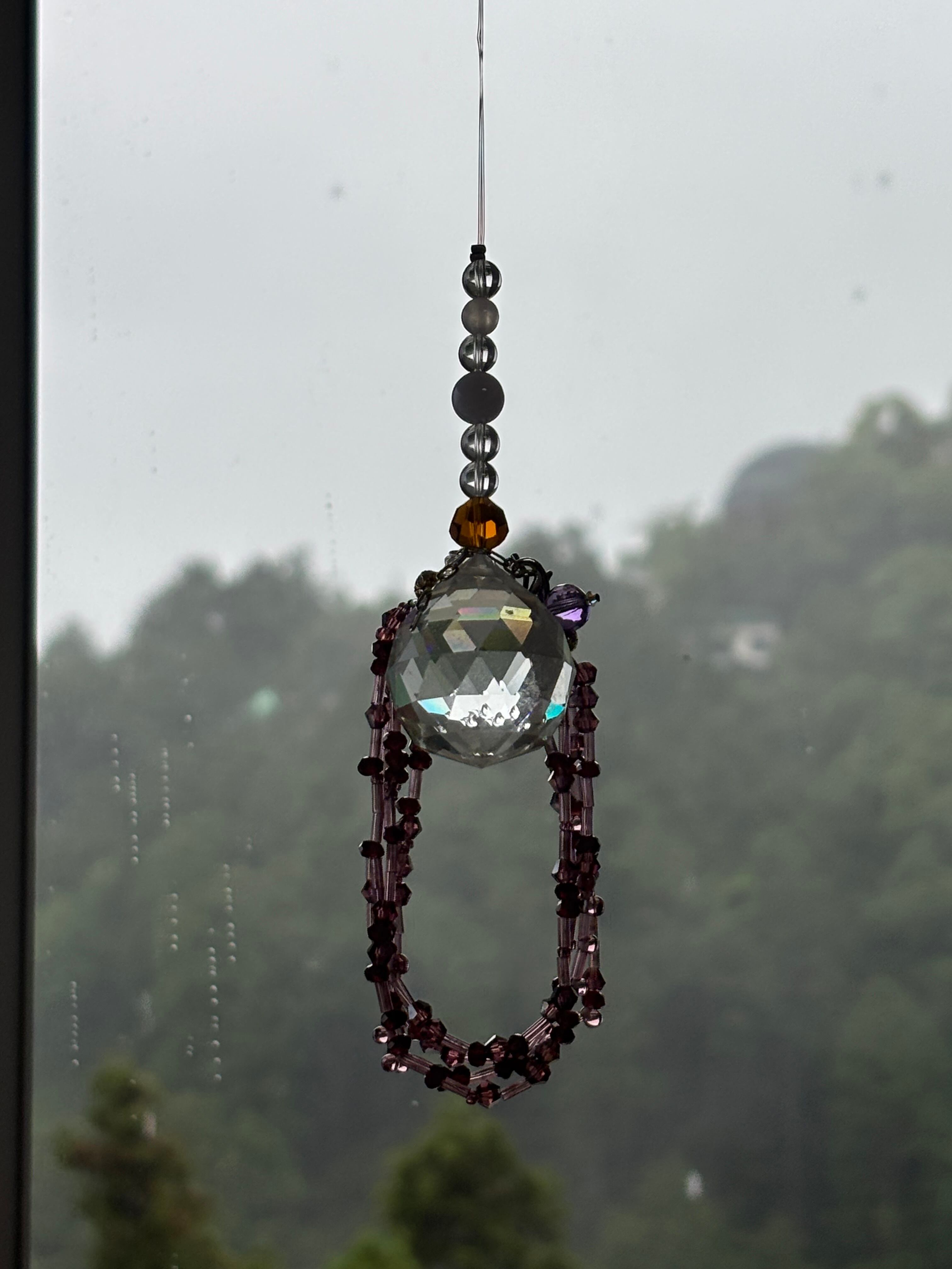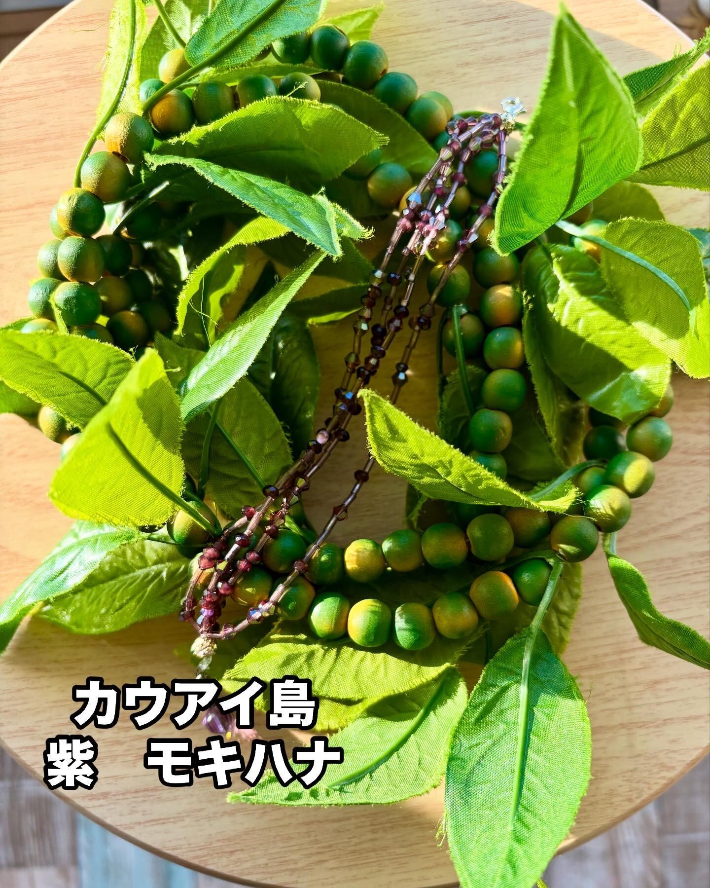 上品な紫色のロングビーズと六角型ビーズ4連ブレスレットになります